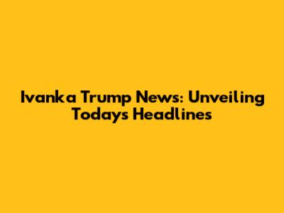 Breaking News: Ivanka Trump's Latest Updates & Headlines