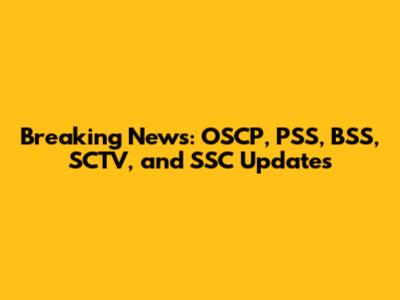 Breaking News: OSCP, PSS, BSS, SCTV, And SSC Updates