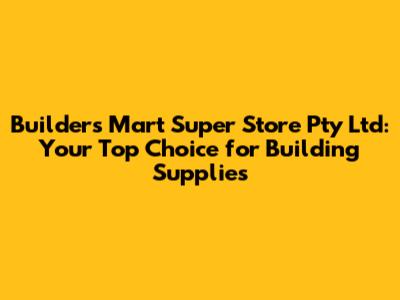 Hey guys! Are you looking for the best place to get all your building supplies? Look no further! We're diving deep into why Builders Mart Super Store Pty Ltd should be your go-to for everything construction-related. Whether you're a seasoned contractor or a weekend DIY enthusiast, this is the spot for you. Let’s get started!