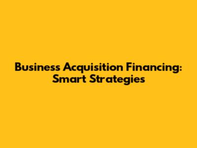 Business Acquisition Financing: Smart Strategies