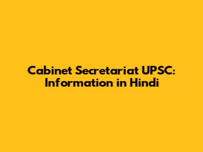 Cabinet Secretariat UPSC: Information In Hindi