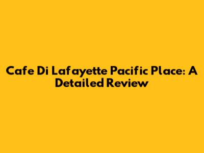 Hey guys! Ever find yourself wandering around Pacific Place, craving a cozy spot with delicious treats and a great ambiance? Well, let’s dive into a detailed review of Cafe Di Lafayette right in the heart of Pacific Place. This place has been buzzing, and I wanted to give you the lowdown on everything from the menu to the atmosphere. So grab your virtual coffee, and let’s get started!