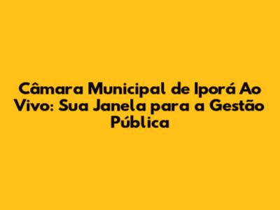 Câmara Municipal De Iporá Ao Vivo: Transmissões E Informações
