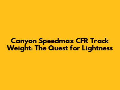 Canyon Speedmax CFR Track Bike: Weight Secrets Unveiled