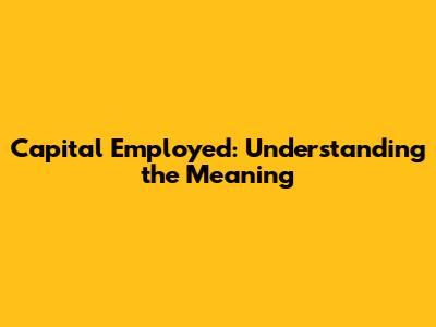 Capital Employed: Understanding The Meaning