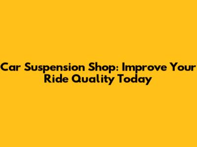 Car Suspension Shop: Improve Your Ride Quality Today