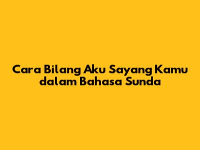Cara Bilang Aku Sayang Kamu Dalam Bahasa Sunda