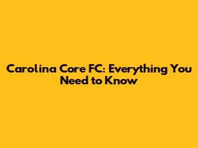 Carolina Core FC: Everything You Need To Know
