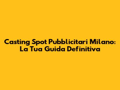 Casting Spot Pubblicitari Milano: Guida Completa