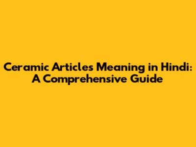 Ceramic Articles In Hindi: Meaning And Uses Explained
