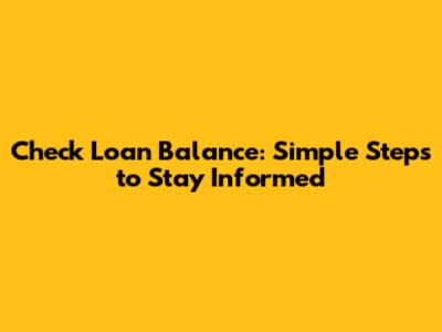 Check Loan Balance: Simple Steps To Stay Informed