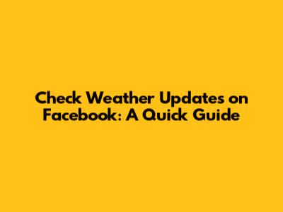 Check Weather Updates On Facebook: A Quick Guide