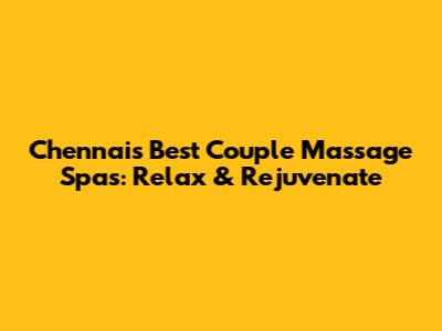 Chennai's Best Couple Massage Spas: Relax & Rejuvenate