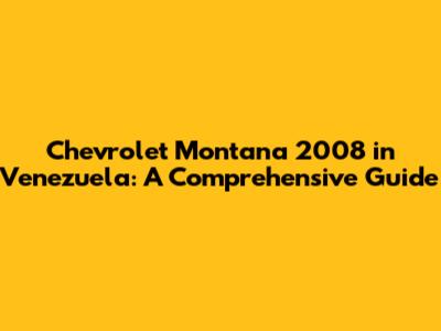 Chevrolet Montana 2008 In Venezuela: A Comprehensive Guide