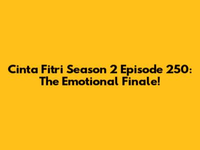 Hey guys! Let's dive into the whirlwind of emotions that was Cinta Fitri Season 2 Episode 250. This episode was the culmination of all the drama, love, and heartbreak we've witnessed throughout the season. Get ready for a rollercoaster of feelings as we unpack everything that went down. We'll explore the key plot points, character arcs, and why this episode left such a lasting impact on fans. Remember how complex the relationships were? Well, episode 250 brought everything to a head, forcing characters to confront their pasts and make some tough decisions about their futures. Whether you're a long-time fan or just curious about this iconic Indonesian soap opera, buckle up because we're about to dissect every juicy detail of this unforgettable episode. So, grab your snacks, settle in, and let’s relive the drama together! Prepare yourself for spoilers ahead as we delve deep into the heart of Cinta Fitri Season 2 Episode 250. This episode was more than just a conclusion; it was a reflection of the entire season’s journey, filled with unexpected twists, heartfelt moments, and resolutions that left us both satisfied and wanting more. The writers really knew how to tug at our heartstrings, didn't they?