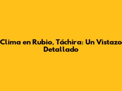 Clima En Rubio, Táchira: Pronóstico Detallado