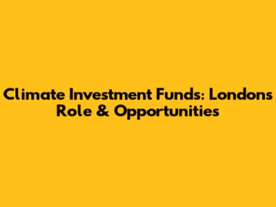 Climate Investment Funds: London's Role & Opportunities