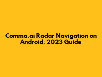 Comma.ai Radar Navigation On Android: 2023 Guide