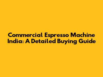 Commercial Espresso Machines: India Buying Guide