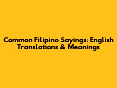 Common Filipino Sayings: English Translations & Meanings