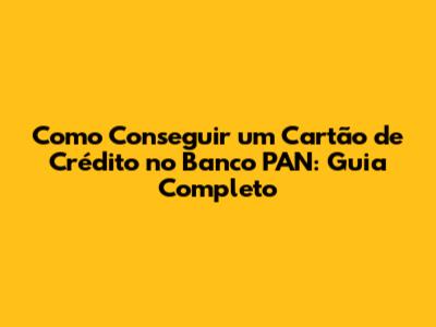 Como Conseguir Um Cartão De Crédito No Banco PAN: Guia Completo