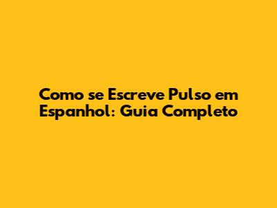 Como Se Escreve 'Pulso' Em Espanhol: Guia Completo