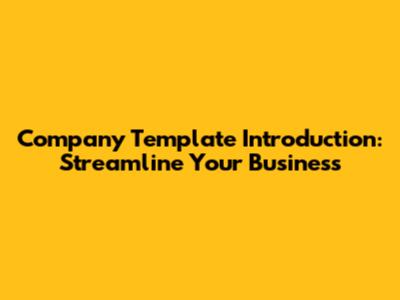 Company Template Introduction: Streamline Your Business