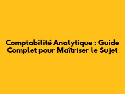 Comptabilité Analytique : Guide Complet Pour Maîtriser Le Sujet