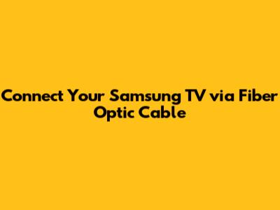 Connect Your Samsung TV Via Fiber Optic Cable