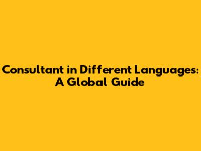 Consultant In Different Languages: A Global Guide