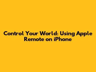 Control Your World: Using Apple Remote On IPhone
