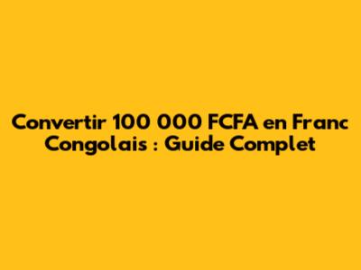 Convertir 100 000 FCFA En Franc Congolais : Guide Complet