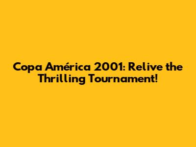Copa América 2001: Relive The Thrilling Tournament!