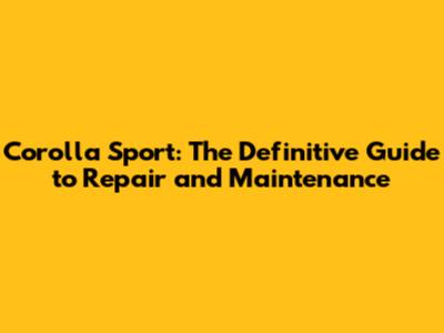Corolla Sport: Ultimate Guide To Repair & Maintenance