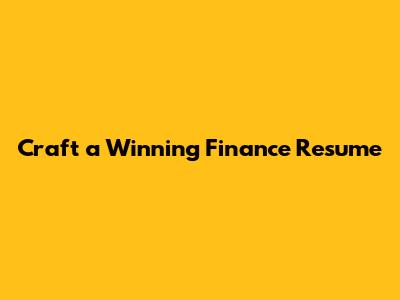 Craft A Winning Finance Resume