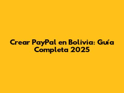 Crear PayPal En Bolivia: Guía Completa 2025