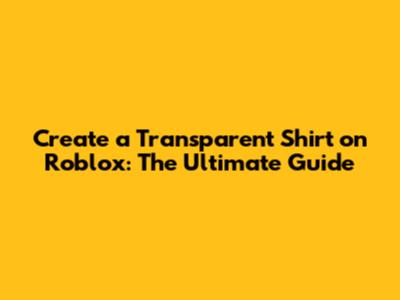 Create A Transparent Shirt On Roblox: The Ultimate Guide