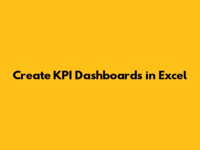 Create KPI Dashboards In Excel