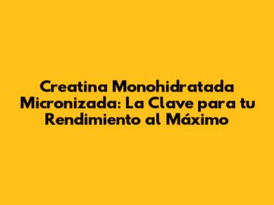 Creatina Monohidratada Micronizada: Guía Completa Para El Rendimiento