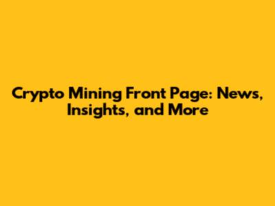 Crypto Mining Front Page: News, Insights, And More