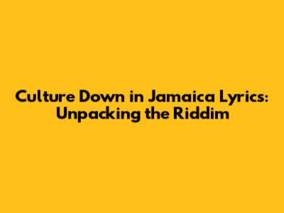 Culture Down In Jamaica Lyrics: Unpacking The Riddim