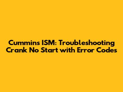 Cummins ISM: Troubleshooting Crank No Start With Error Codes