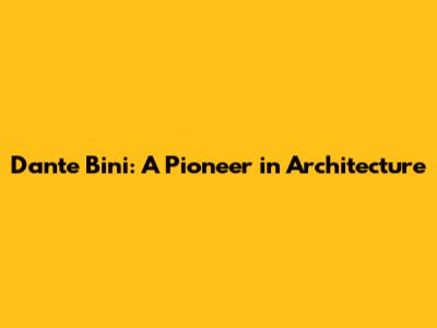 Dante Bini: Innovative Architect And His Groundbreaking Designs