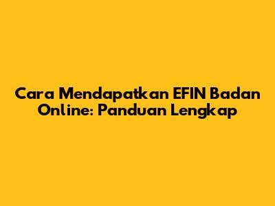Dapatkan EFIN Badan Online Dengan Mudah!