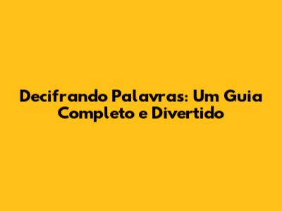 Decifrando Palavras: Um Guia Completo E Divertido
