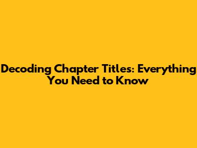 Decoding Chapter Titles: Everything You Need To Know