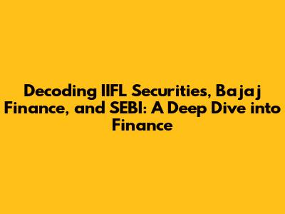 Decoding IIFL, Bajaj Finance & SEBI In Finance