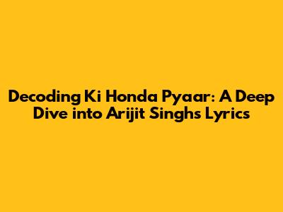 Hey guys! Ever found yourself completely captivated by a song? That feeling when the melody and lyrics just hit you right in the feels? Well, that's exactly what happened when I first heard Arijit Singh's incredible track, "Ki Honda Pyaar." This song, with its soulful tune and incredibly relatable lyrics, has become a favorite for many. So, let's dive deep and explore the magic behind "Ki Honda Pyaar," breaking down the lyrics, their meaning, and why this song has resonated with so many.