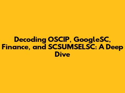 Decoding OSCIP, GoogleSC, Finance, And SCSUMSELSC: A Deep Dive