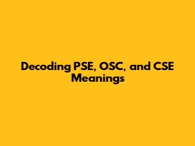 Decoding PSE, OSC, And CSE Meanings